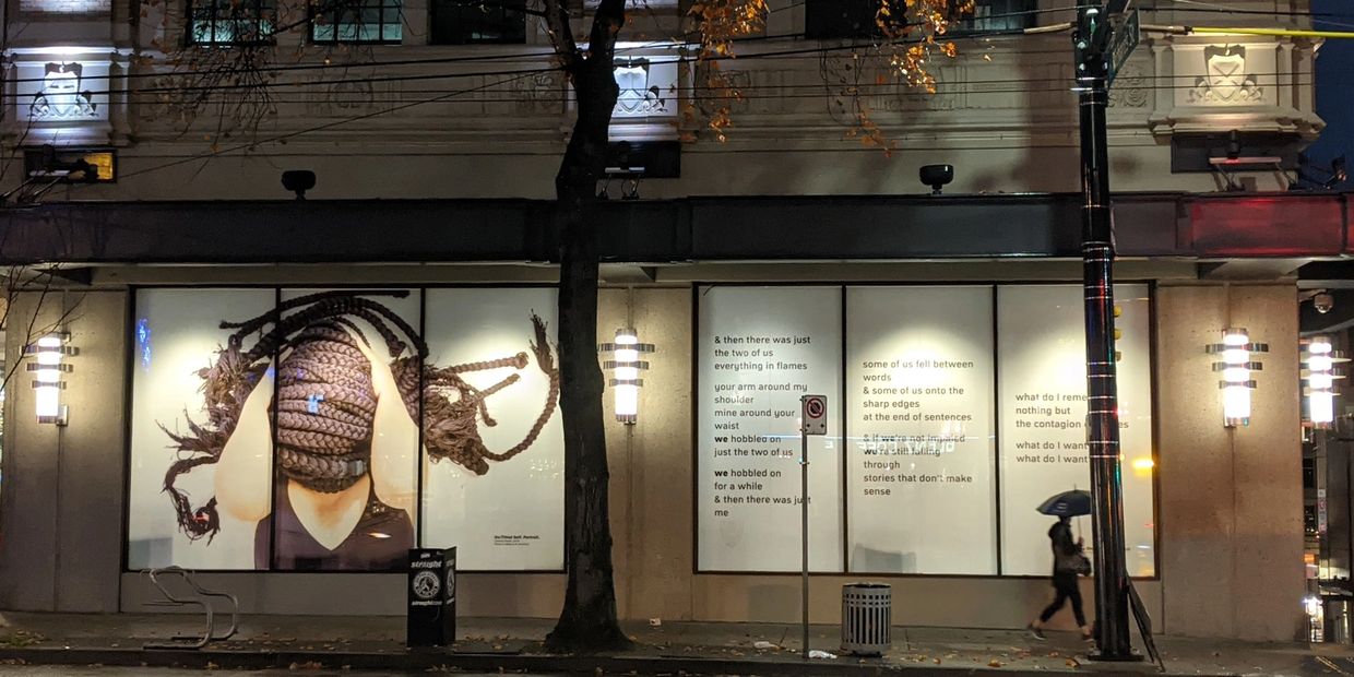 Since November of 2020, Vancouverites have been consuming the resilience, energy, and beauty of Black womanhood through visual art in the form of a 240 foot photo-poetic art installation un/settled. The piece, which resides at the intersection of West Hastings and Richards Street occupying SFU Belzberg Library’s large windows, embodies Blackness and everything that celebrates Black creativity.